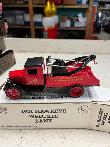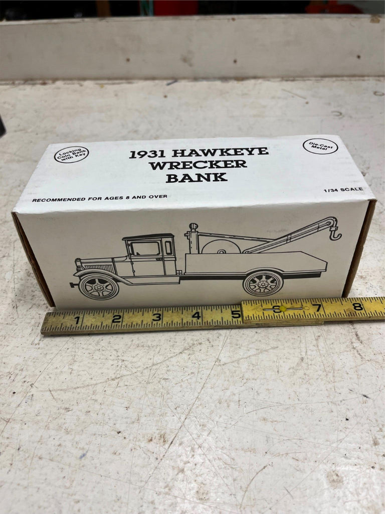 vtg 1991 ERTL 1931 Hawkeye Wrecker Truck bank diecast collectors item NIB