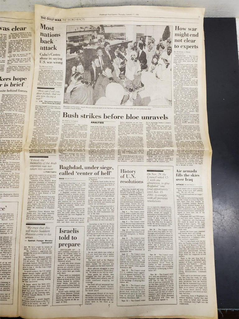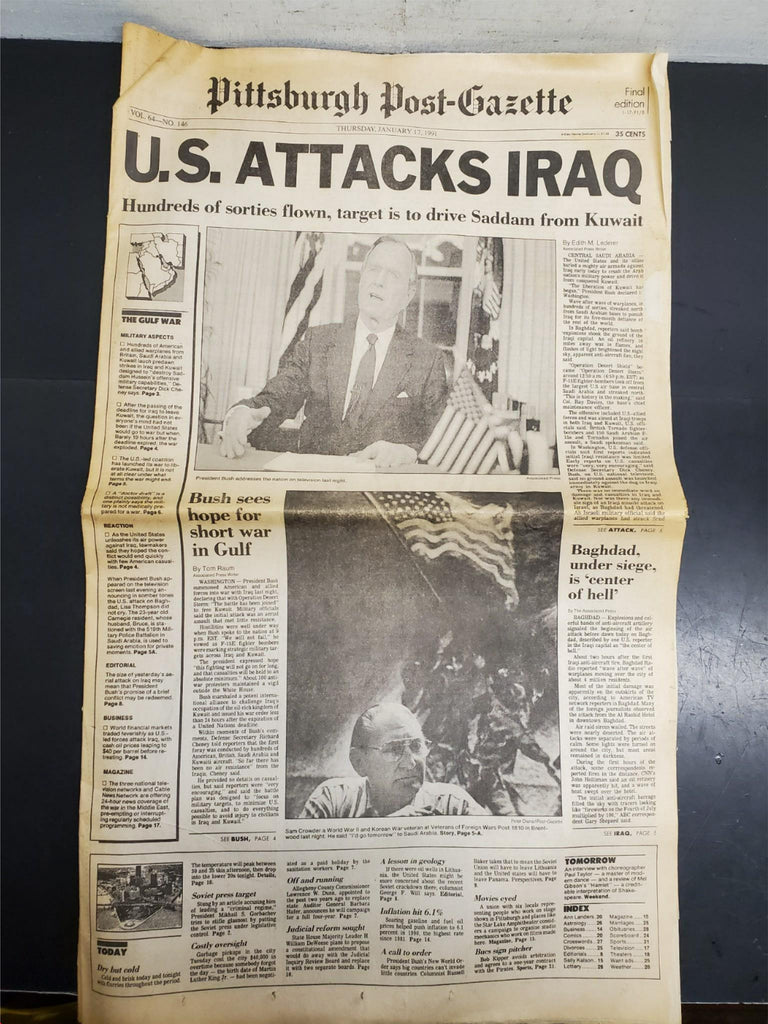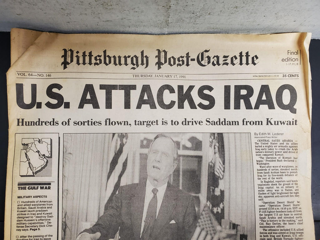 Vtg 1991 Pittsburgh Post-Gazette Newspaper US Attacks Iraq Gulf War Saddam Bush