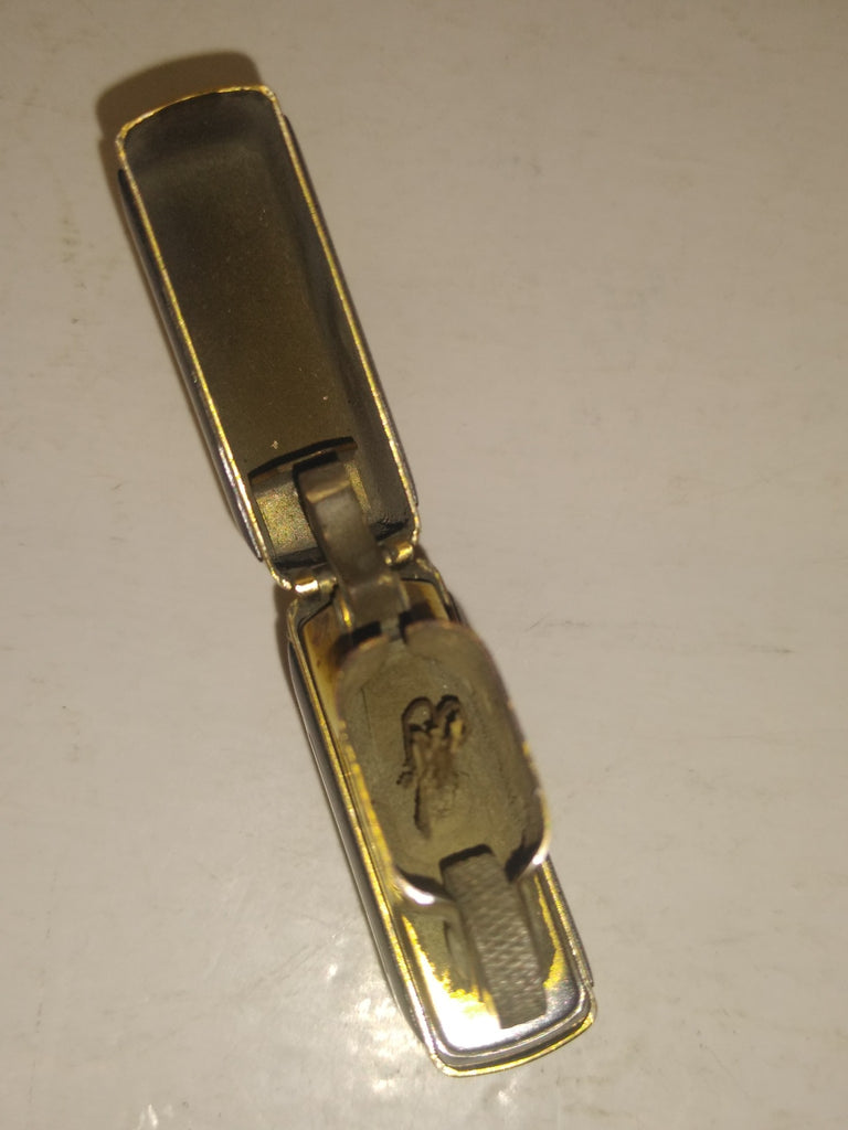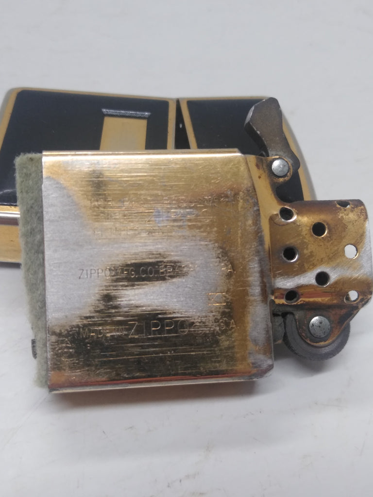 This is a Vtg 1995 Zippo Golden Tone Black Ultralite Cigarette Lighter Not Engraved! Very good condition with some metal wear and signs of use.