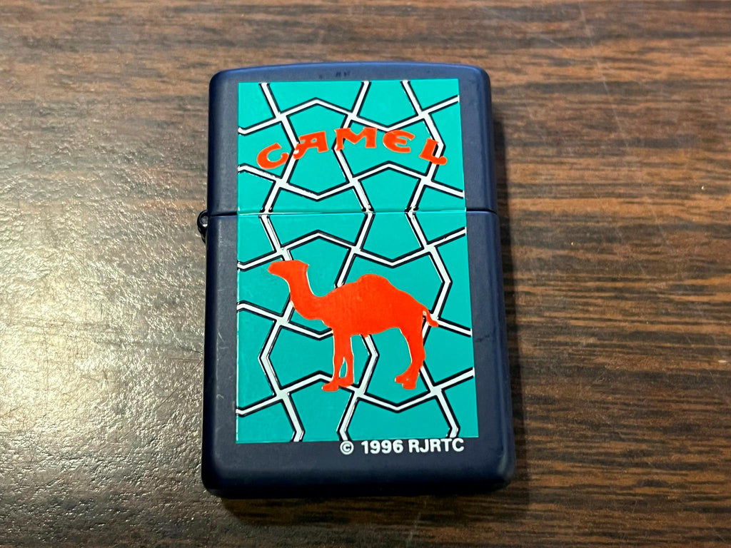 VTG 1996 Unfired Camel Stained Glass Navy Blue Matte Zippo Lighter