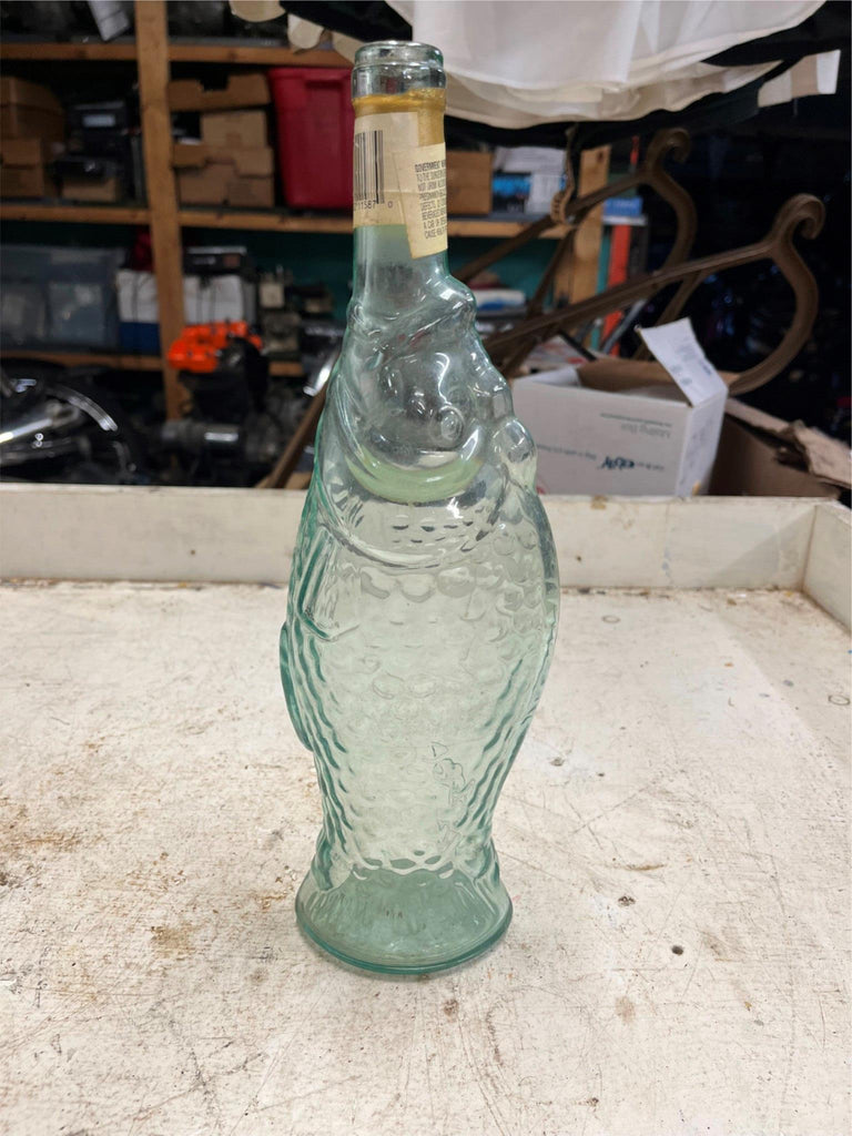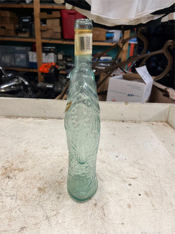 vtg 1997 Pescevino green glass white wine fish bottle missing lid .
