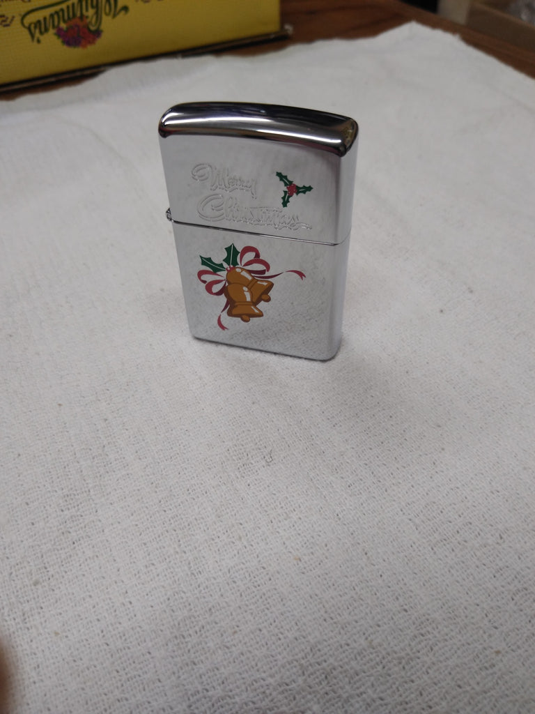 This is a 1997 Vtg Zippo Cigarette Lighter MERRY CHRISTMAS with Jingle Bells and Holly, it is Unfired and comes in it's Display Box and is near mint condition!
