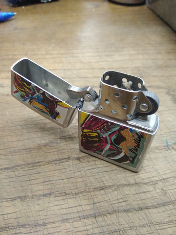 This is a Vtg 1997 Zippo Richard Wallich Guitar Cigarette Lighter Brushed Chrome Nice! !