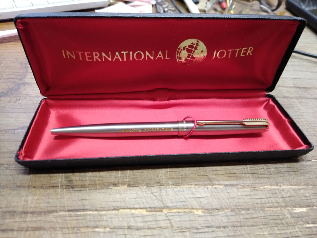 ***PLEASE LOOK AT ALL THE PICTURES AND ASK QUESTIONS BEFORE BIDDING*** This is a Vintage 2 Pc Parker Advertising Pen Lot Big Red Felt Tip Fab Art and International Jotter Minnotte Corp. Ball Point, With Boxes!***pens need new refills! *** The pictures are a substantial part of the description so please examine all the photos and contact me if you have any questions. We will be happy to save you shipping costs by picking this up at our shop. Thank You 040325- RK-07