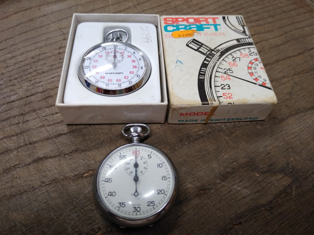 ***PLEASE LOOK AT ALL THE PICTURES AND ASK QUESTIONS BEFORE BIDDING*** This is a Vintage 2 Pc Stop Watch Parts Repair Restore Lot Galco 7j Sportcraft Swiss w/Box *** The pictures are a substantial part of the description so please examine all the photos and contact me if you have any questions. We will be happy to save you shipping costs by picking this up at our shop. Thank You 090525-12