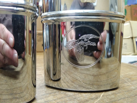 his is a Vtg. 2 Piece Hip Flask Lot Wild Turkey Kentucky Straight Bourbon Whiskey Nice!! The pictures are a substantial part of the description so please examine all the photos and contact me if you have any questions. We will be happy to save you shipping costs by picking this up at our shop. Thanks for looking. 100622-17-RK