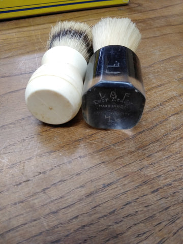 ***PLEASE LOOK AT ALL THE PICTURES AND ASK QUESTIONS BEFORE BIDDING***  This is a Vintage 2 Piece Shaving Brush Lot with an Ever Ready Lucite Nylon Bristle and a Unbranded Boar Bristle brush , Made In USA and In Good Condition. The Ever Ready has the previous owners initials carved into the handle but they would still be good everyday users. The pictures are a substantial part of the description so please examine all the photos and contact me if you have any questions. We will be happy to save you shipping costs by picking this up at our shop. Thanks for looking.  020122-RK-05