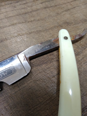 ***PLEASE LOOK AT ALL THE PICTURES AND ASK QUESTIONS BEFORE BIDDING***  This is a Vintage 2 Piece Straight Razor Parts and Repair Lot Burnell Crown Double Arrow.  Please Check Condition Description for more information.