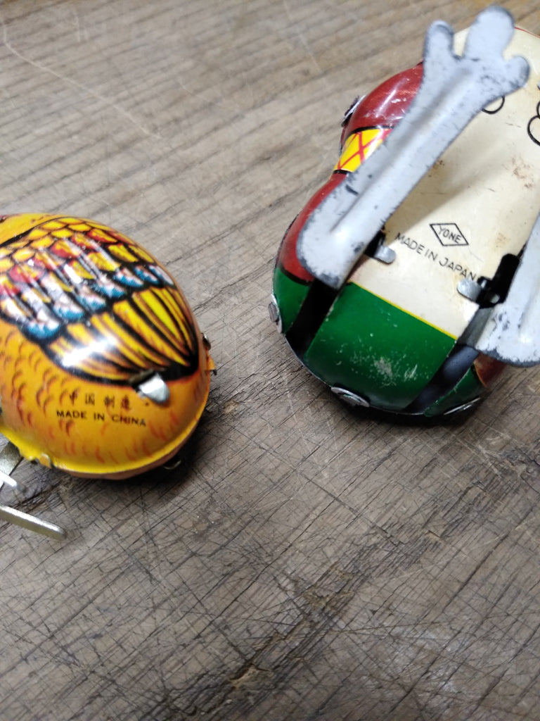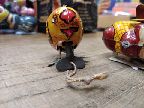 Vtg 2 Wind Up Hopping Mouse and Chick Litho Tin Toys Lot Yone Japan w/Key Works!