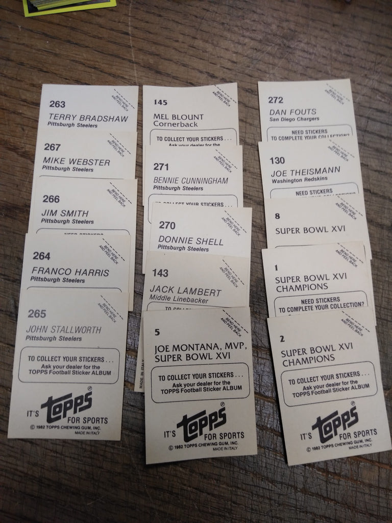***PLEASE LOOK AT ALL THE PICTURES AND ASK QUESTIONS BEFORE BIDDING*** This is a Vintage 280+ Pc Lot 1982 Topps NFL Trading Card Stickers Collectable!. *** The pictures are a substantial part of the description so please examine all the photos and contact me if you have any questions. We will be happy to save you shipping costs by picking this up at our shop. Thank You 050925- RK-03