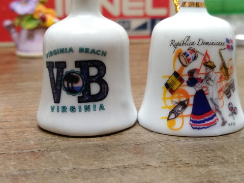 Vtg 3 Pc Bone China Mini Bell Lot Virginia Beach Dominican Republic Myrtle Beach
