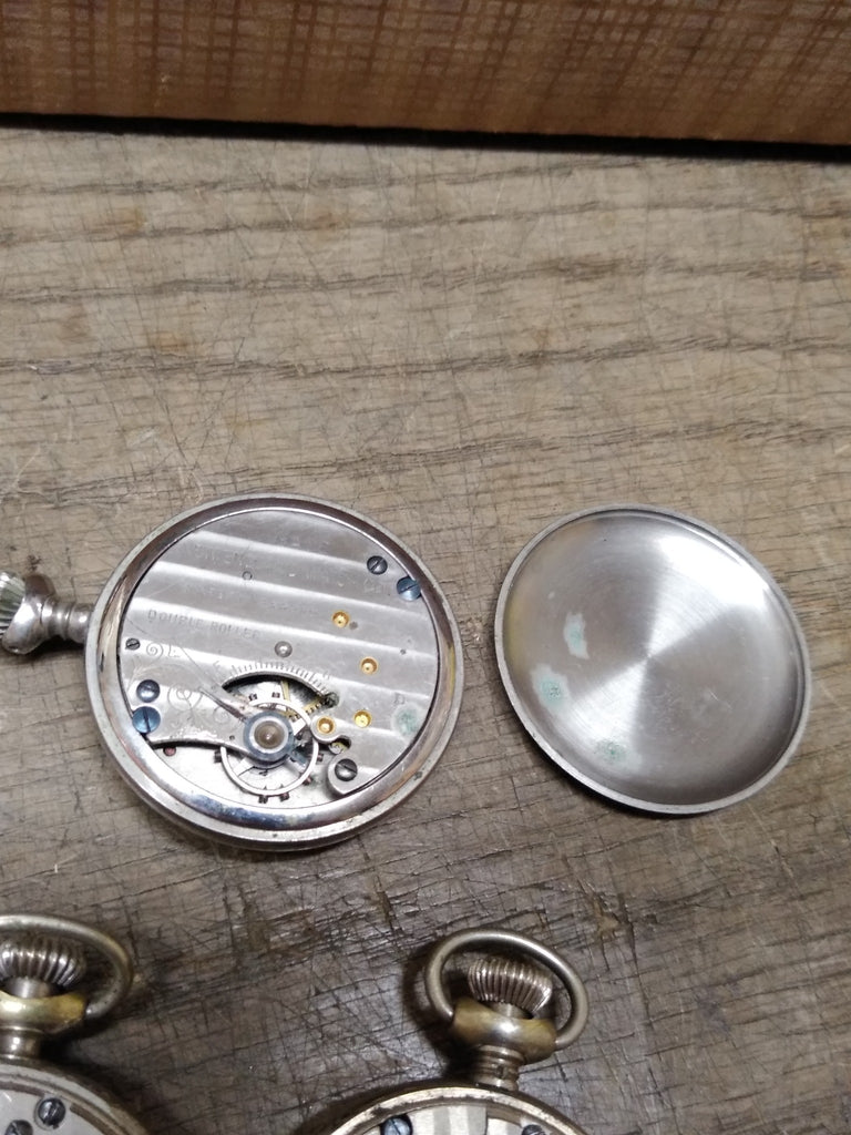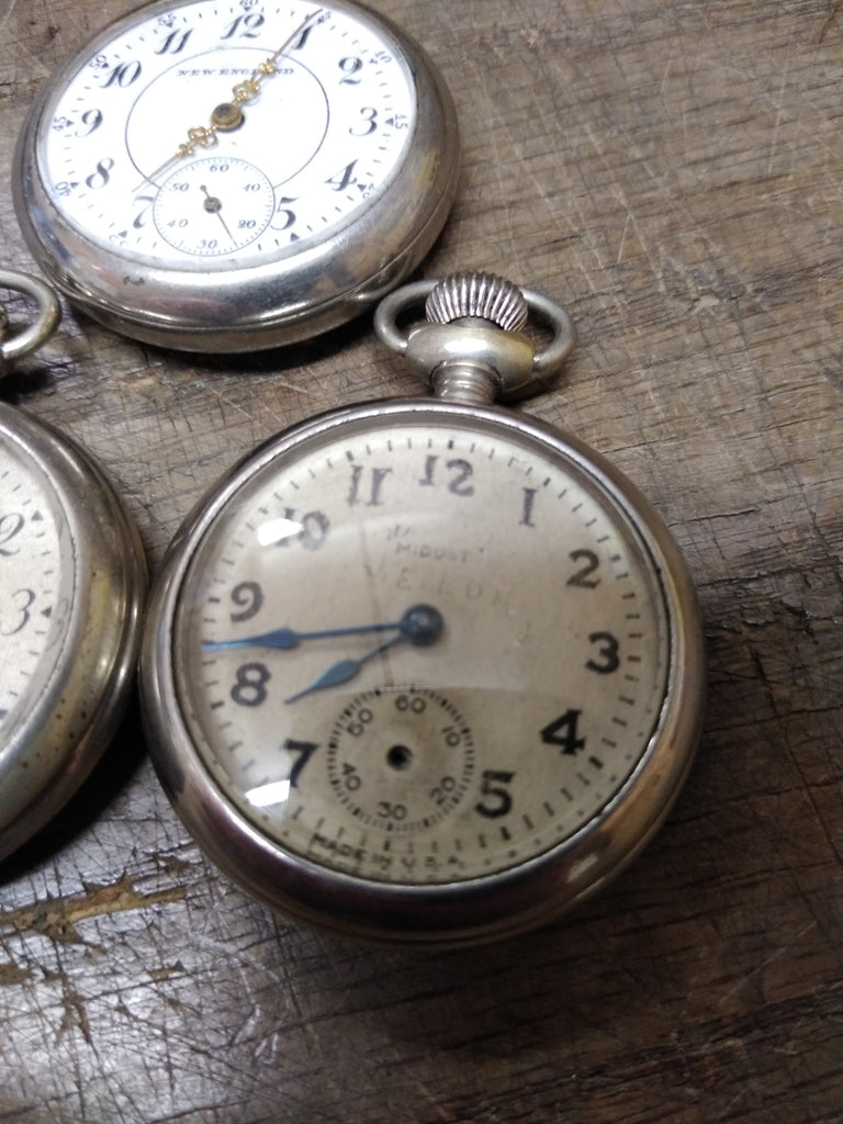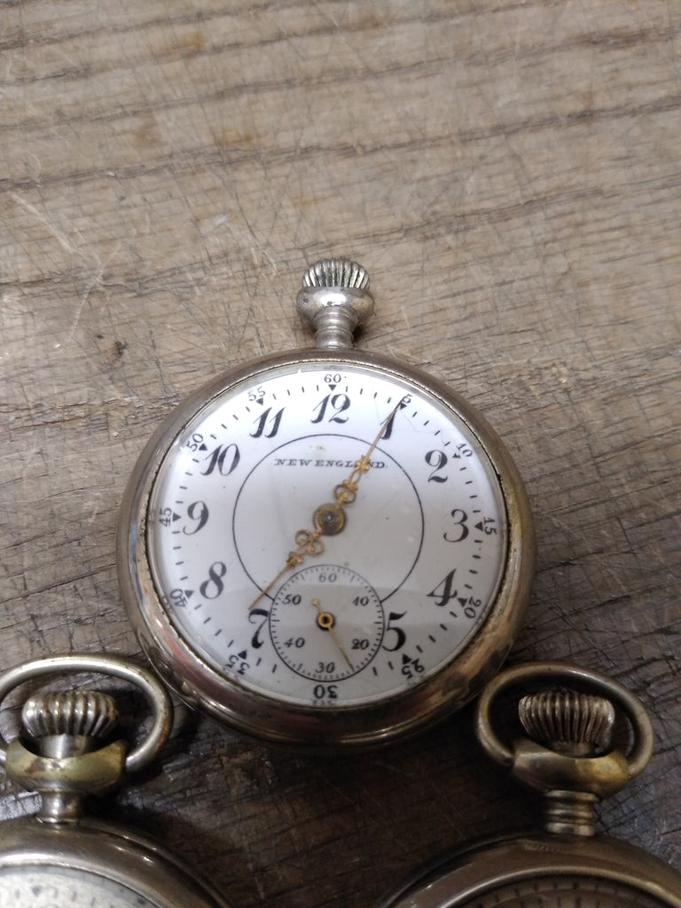 Vtg 3 Pc Pocket Watch Parts and Repair Lot New England 2 x Ingersoll