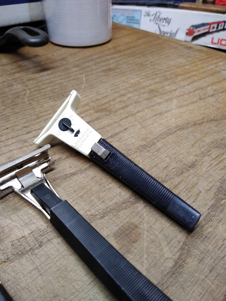 Vtg 3 Pc Razor Lot 2 x Schick 1 x Gillette Techmatic Cartridge Safety Razor Nice