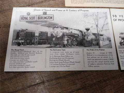 This is a Vtg. 3 Piece Railroad Locomotive Post Card Lot North Western Pioneer C & N W.R. Burlington, Royal Scott Locomotives, in Good condition! The pictures are a substantial part of the description so please examine all the photos and contact me if you have any questions. We will be happy to save you shipping costs by picking this up at our shop. Thanks for looking. 120822-10-RK