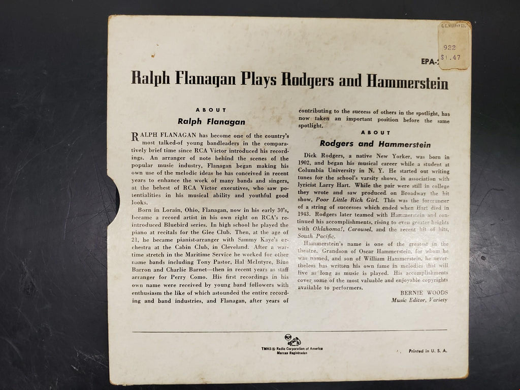 Vtg 45 Rpm Ralph Flanagan plays Rodgers & Hammerstein II for dancing RCA Victor