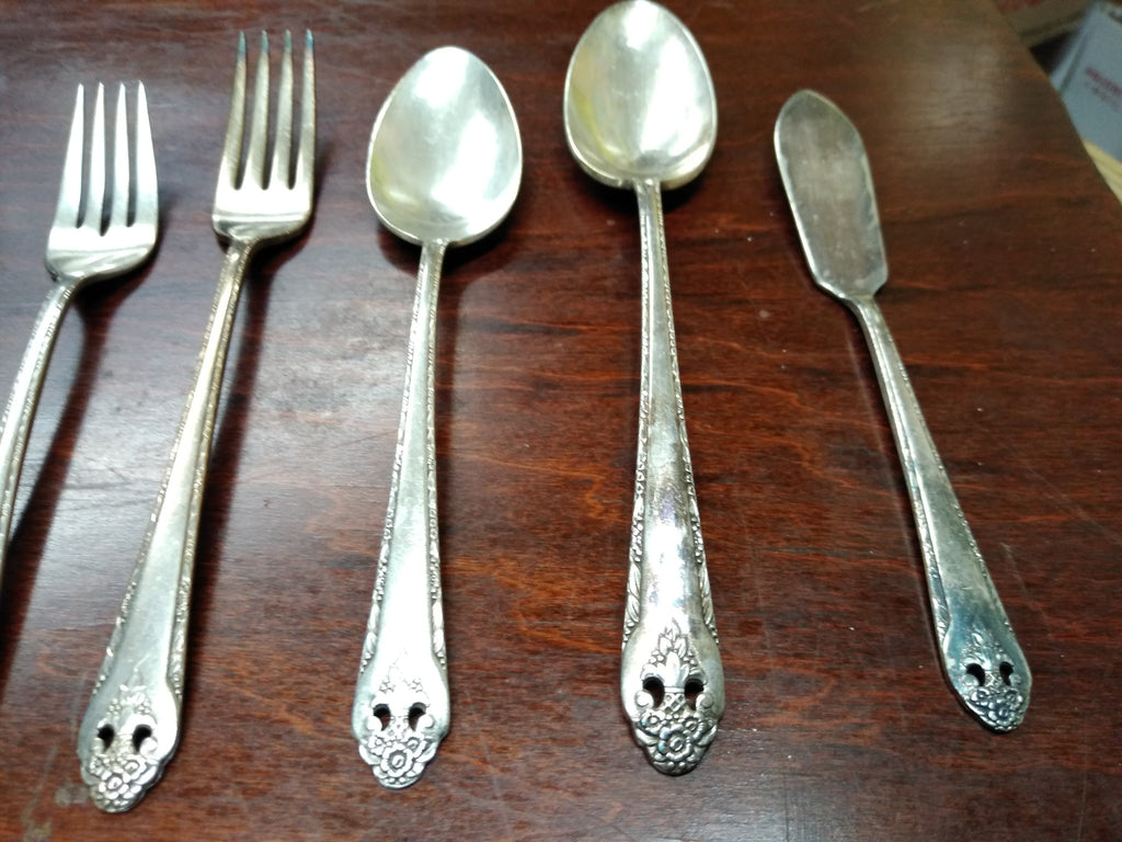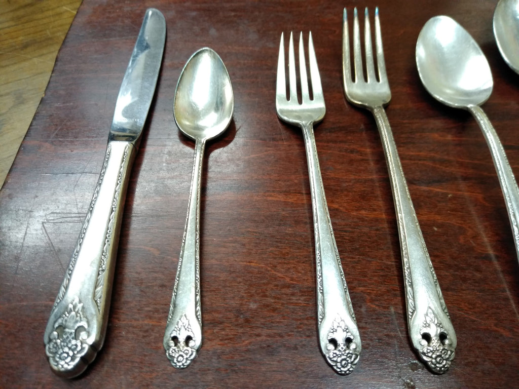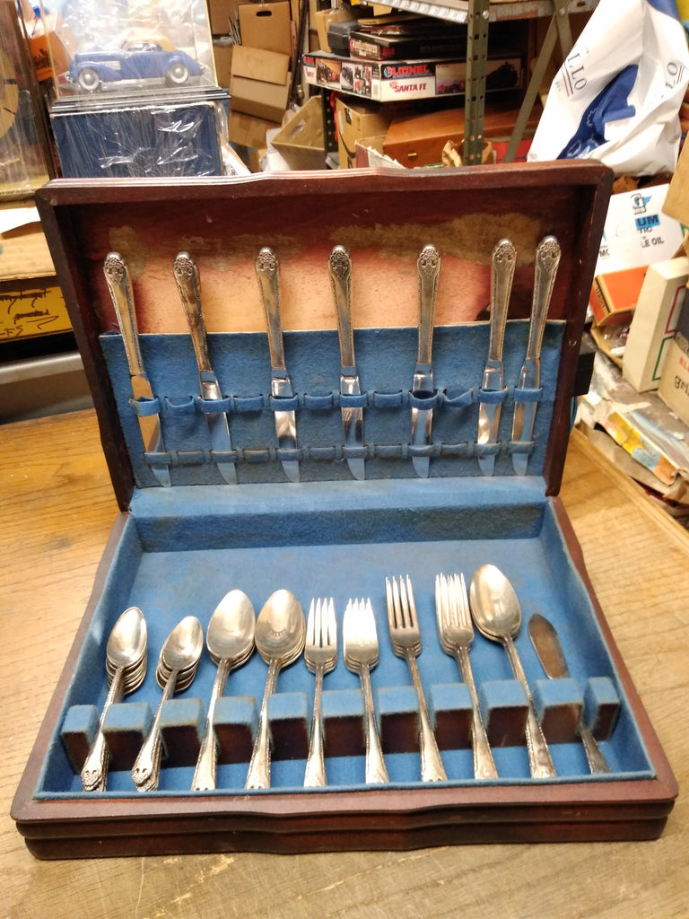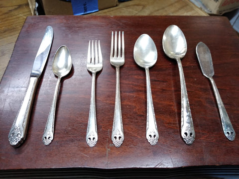 This is a Vintage 47 Pc Holmes & Edwards Inlaid Silver Plated Lovely Lady Flat Ware Set w/Case. 13 Tea Spoons, 8 Table Spoons, 8 Salad Forks, 8 Dinner Forks, 7 Dinner Knives, 2 Serving Spoons, 1 Butter Knife. *** The pictures are a substantial part of the description so please examine all the photos and contact me if you have any questions. We will be happy to save you shipping costs by picking this up at our shop. Thank You 121624- RK-07