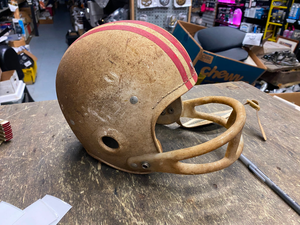 Vtg 50's Football helmet Superior Higgings Clothing San francisco 49ers Kids Great piece for the gameroom.... needs cleaned up....