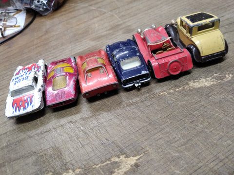 ***PLEASE LOOK AT ALL THE PICTURES AND ASK QUESTIONS BEFORE BIDDING*** This is a Vintage 6 Pc Matchbox Lot Toy Diecast Cars Truck Blue Flame 62 Corvette Model A Ford . *** The pictures are a substantial part of the description so please examine all the photos and contact me if you have any questions. We will be happy to save you shipping costs by picking this up at our shop. Thank You 031425- RK-11