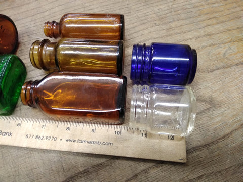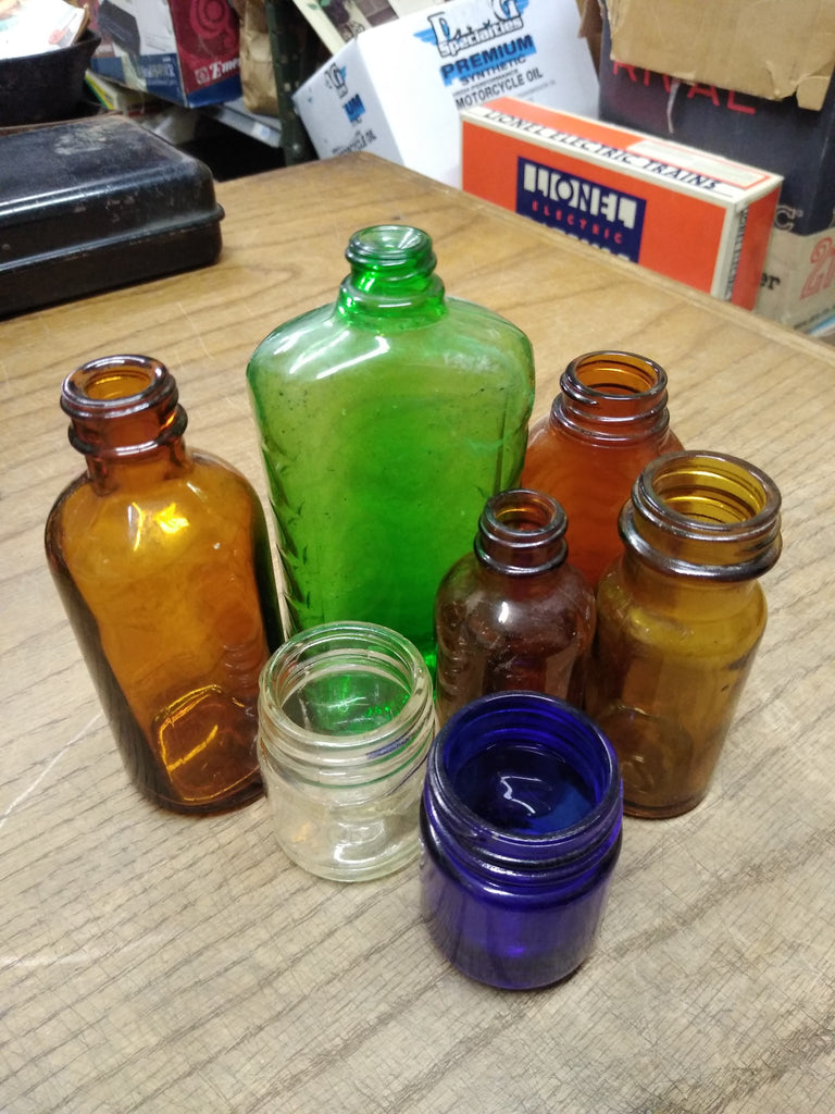 This is a Vintage 6 Piece Decorative Glass Bottle Lot; Wildroot Green, Blue Vicks, assorted Brown Medicine bottles in Nice Shape!!!!!!!****** The pictures are a substantial part of the description so please examine all the photos and contact me if you have any questions. We will be happy to save you shipping costs by picking this up at our shop. Thanks for looking. 010224- RK-01