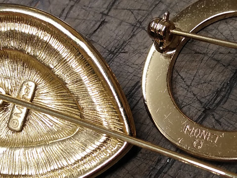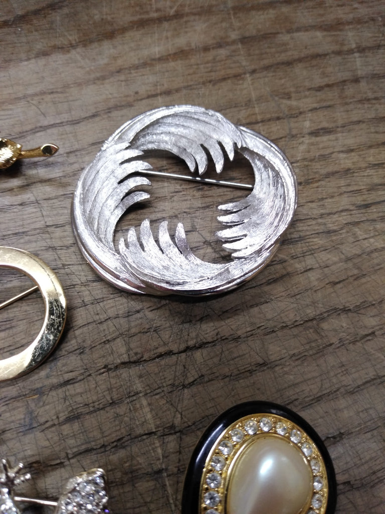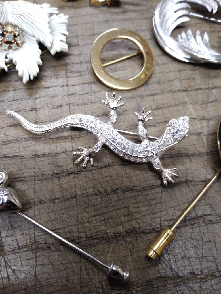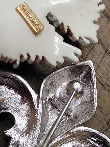 ***PLEASE LOOK AT ALL THE PICTURES AND ASK QUESTIONS BEFORE BUYING*** This is a Vintage 7 Pc Brooch Pin Jewelry w/Rhinestones Lot; Crown Trifari, Trifari, Pastelli, Roman, and Monet. The pictures are a substantial part of the description so please examine all the photos and contact me if you have any questions. We will be happy to save you shipping costs by picking this up at our shop. Thank You 080824- RK-09