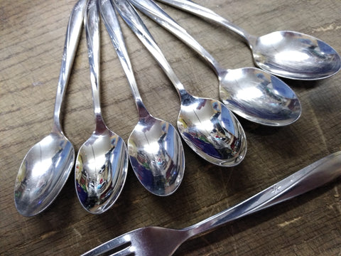 ***PLEASE LOOK AT ALL THE PICTURES AND ASK QUESTIONS BEFORE BIDDING*** This is a Vintage 7 Piece Fork Spoons Stainless Steel Oneida Community Twin Star Flatware Lot *** The pictures are a substantial part of the description so please examine all the photos and contact me if you have any questions. We will be happy to save you shipping costs by picking this up at our shop. Thank You 071525- RK-09