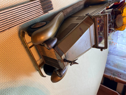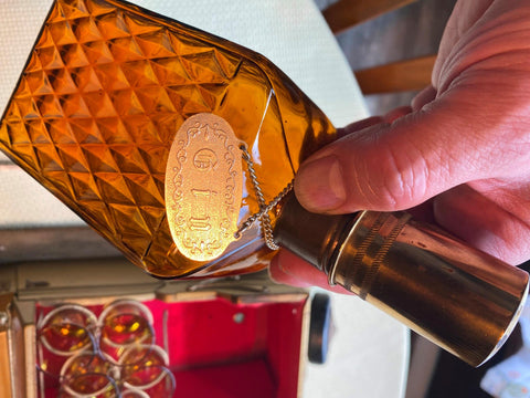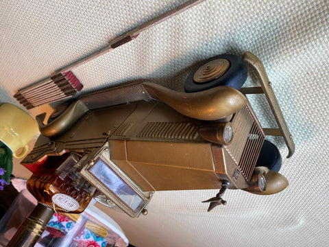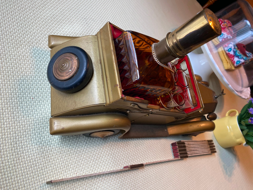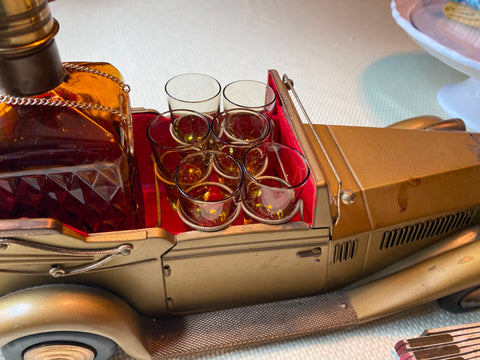 Vtg 70s Car Rolls Royce Gin Scotch Decanter Shot Glasses Music Box "How Dry I Am