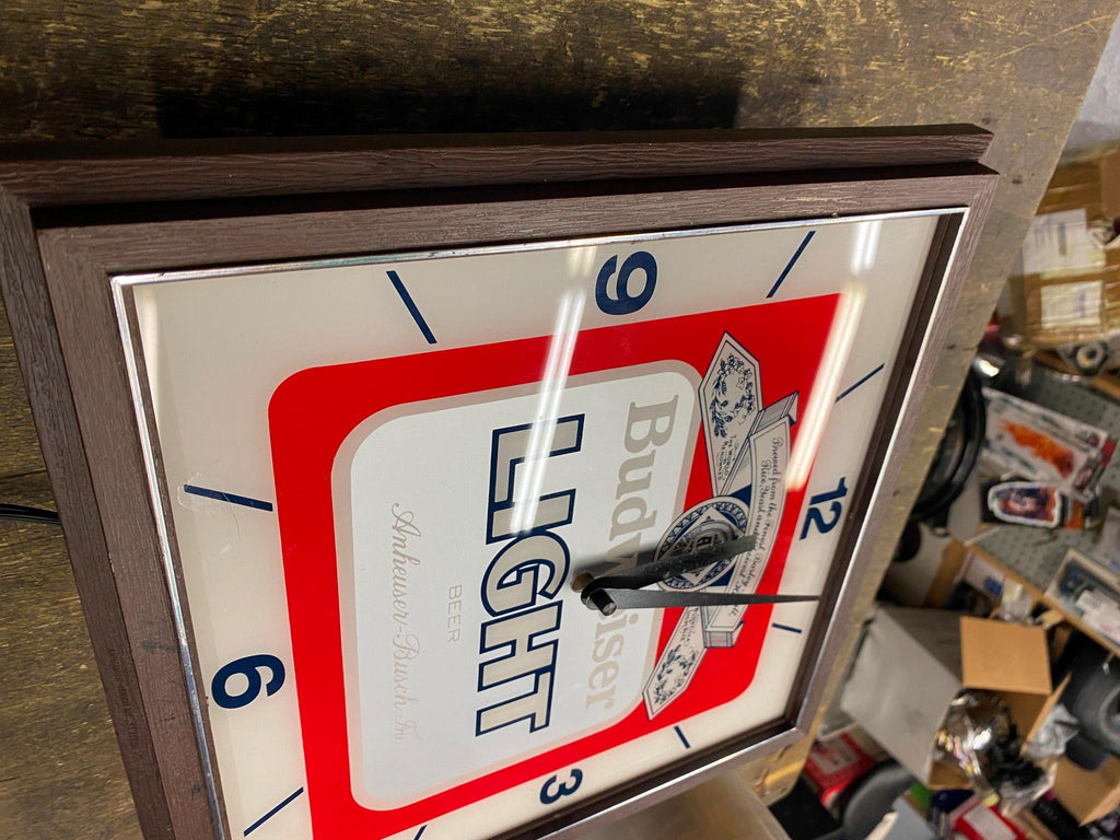 - Vtg 80's Budweiser Light Beer Sign Clock 13" Man Cave Garage TAvern Breweriana! clock seems to work fine, needs bulbs, Clean piece from 1982 Nice survivor!!