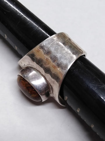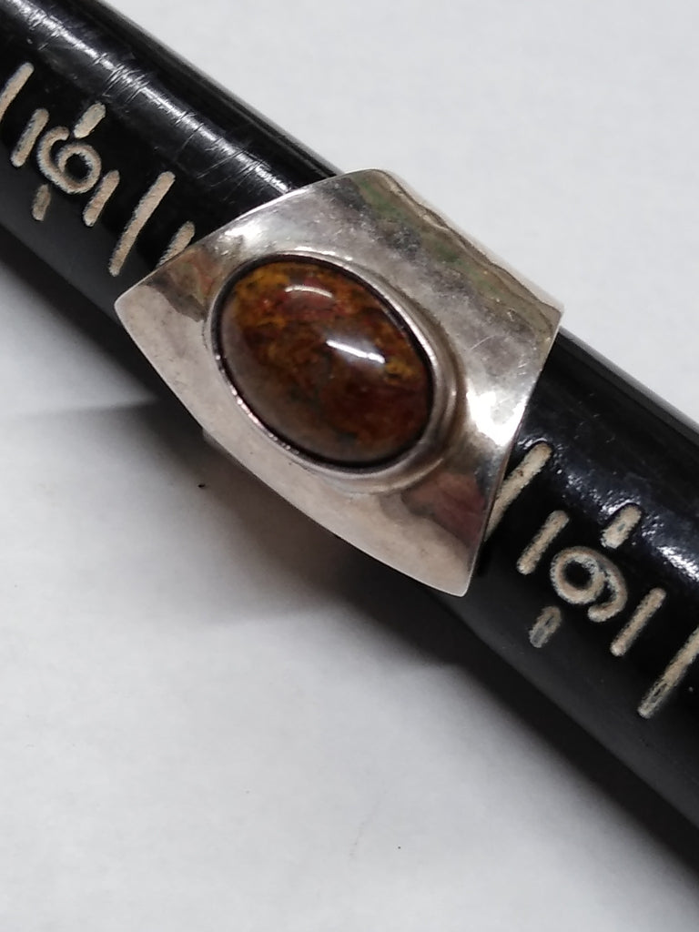 ***PLEASE LOOK AT ALL THE PICTURES AND ASK QUESTIONS BEFORE BIDDING*** This is a Vintage 925 DDD Sterling Hammered Silver Natural Jasper Stone Modernist Ring Size 8 Mexico Very Nice! *** The pictures are a substantial part of the description so please examine all the photos and contact me if you have any questions. We will be happy to save you shipping costs by picking this up at our shop. Thank You 091925-02-RK