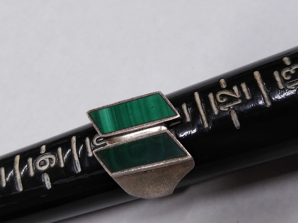 ***PLEASE LOOK AT ALL THE PICTURES AND ASK QUESTIONS BEFORE BIDDING*** This is a Vintage Southwest Style Green Malachite 2 Rectangular Stones Size 10.5 Unisex Nice!! *** The pictures are a substantial part of the description so please examine all the photos and contact me if you have any questions. We will be happy to save you shipping costs by picking this up at our shop. Thank You 091825-01-RK