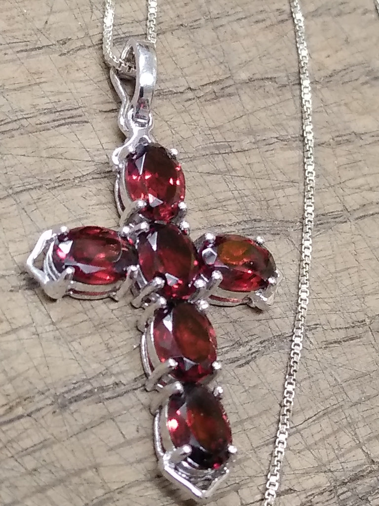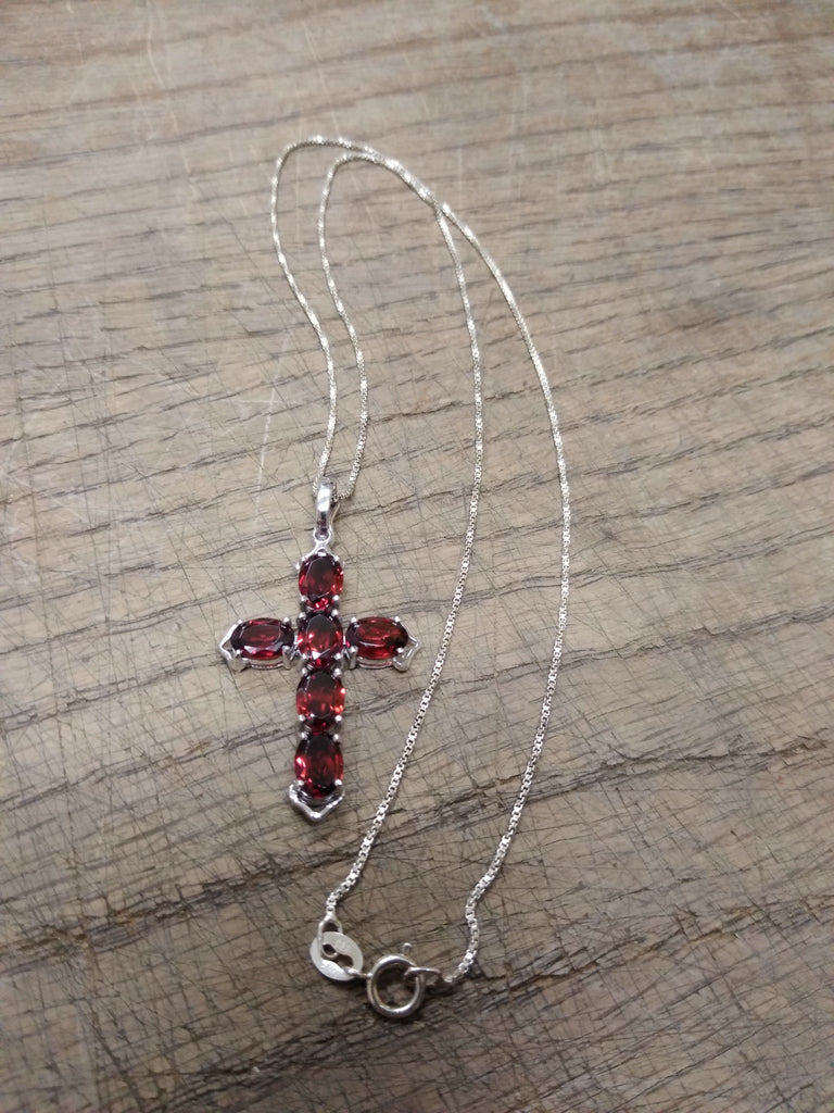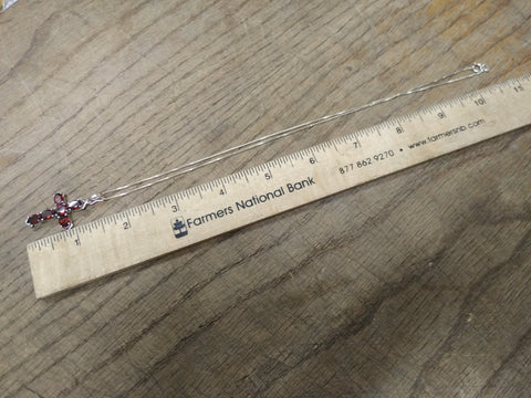***PLEASE LOOK AT ALL THE PICTURES AND ASK QUESTIONS BEFORE BUYING*** This is a Vintage 925 Sterling and Garnet Crucifix Necklace Approximately 18 Inch Stunning!!!!!!!****** The pictures are a substantial part of the description so please examine all the photos and contact me if you have any questions. We will be happy to save you shipping costs by picking this up at our shop. Thanks for looking. 122323- RK-06
