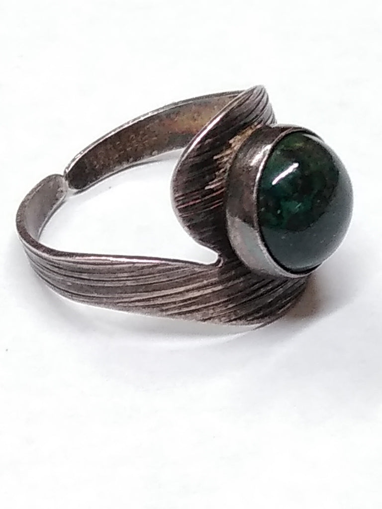 ***PLEASE LOOK AT ALL THE PICTURES AND ASK QUESTIONS BEFORE BIDDING*** This is a Vintage 925 Sterling Round Malachite Stone Modernist Ring Size is Adjustable Israel! *** The pictures are a substantial part of the description so please examine all the photos and contact me if you have any questions. We will be happy to save you shipping costs by picking this up at our shop. Thank You 091925-01-RK