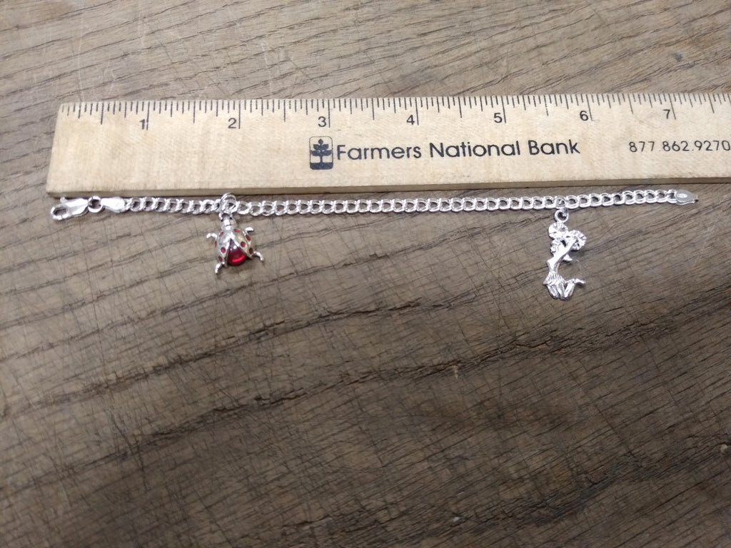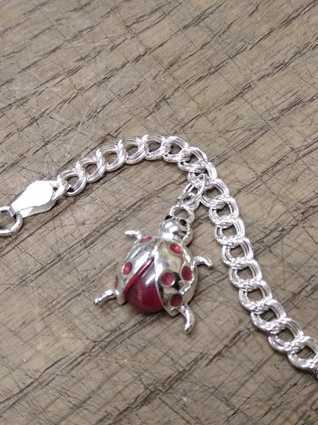 ***PLEASE LOOK AT ALL THE PICTURES AND ASK QUESTIONS BEFORE BUYING*** This is a Vintage 925 Sterling Silver 7 Inch Charm Bracelet w/Cheerleader and Ladybug Charms in Very Nice Condition!!!!!!!****** The pictures are a substantial part of the description so please examine all the photos and contact me if you have any questions. We will be happy to save you shipping costs by picking this up at our shop. Thanks for looking. 122623- RK-06