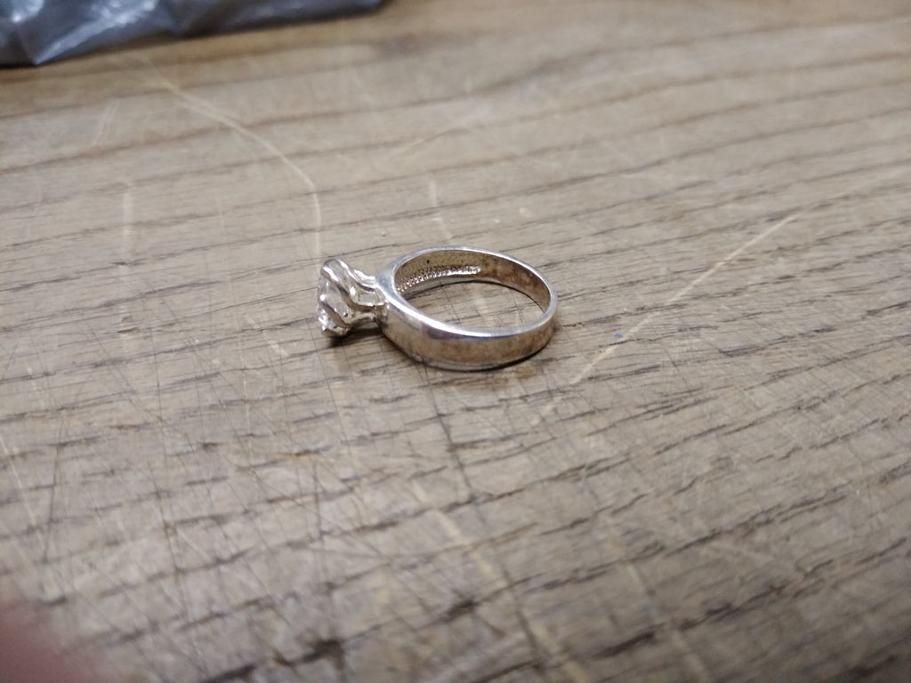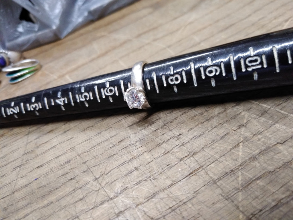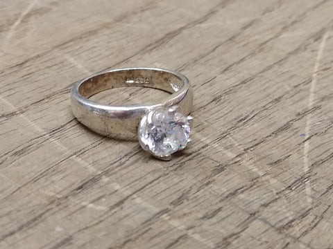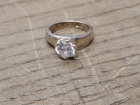***PLEASE LOOK AT ALL THE PICTURES AND ASK QUESTIONS BEFORE BIDDING*** This is a Vintage 925 Sterling Silver CZ Solitaire Stone Size 7 Ring Tested Beautiful!! *** The pictures are a substantial part of the description so please examine all the photos and contact me if you have any questions. We will be happy to save you shipping costs by picking this up at our shop. Thank You 090225-16-RK