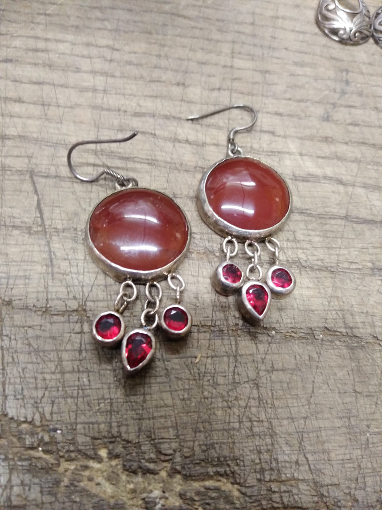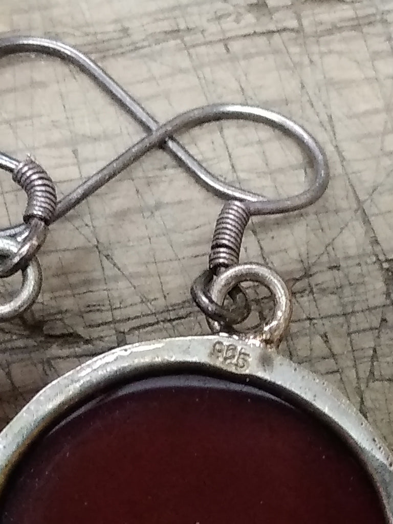***PLEASE LOOK AT ALL THE PICTURES AND ASK QUESTIONS BEFORE BIDDING*** This is a Vintage 925 Sterling Silver Dangle Earrings with Carnelian? and Garnet? but not certain, I am not a jeweler so you may know better than me.