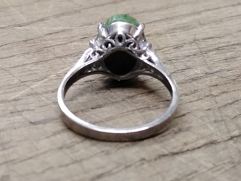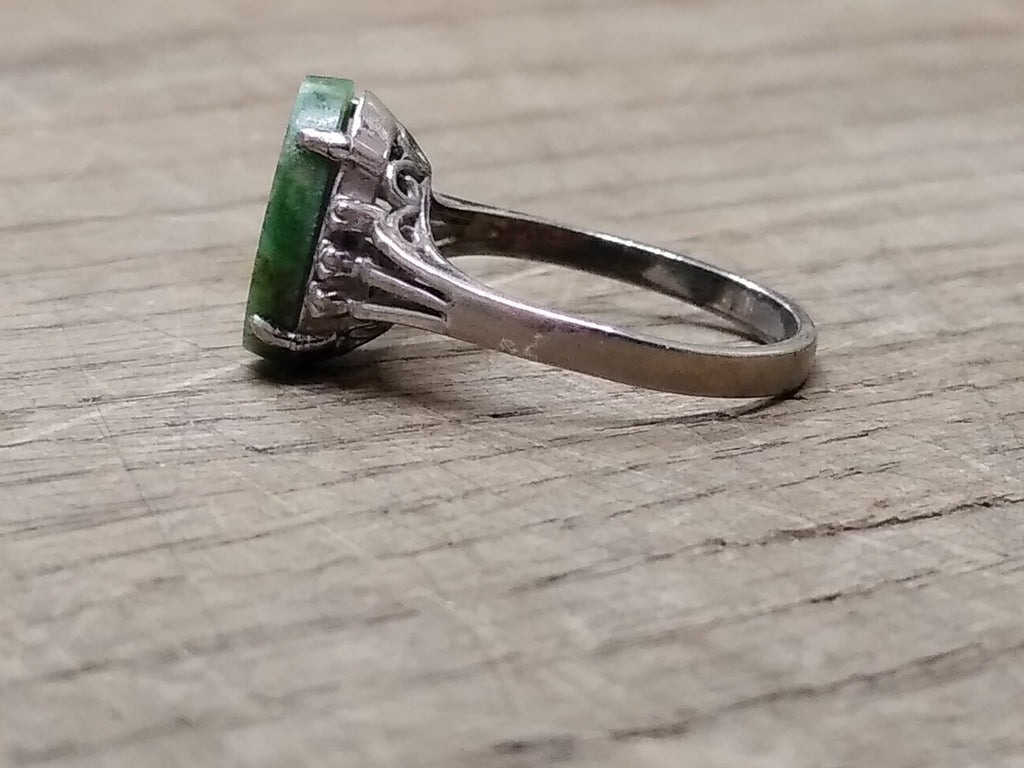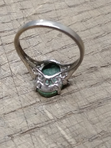 ***PLEASE LOOK AT ALL THE PICTURES AND ASK QUESTIONS BEFORE BIDDING*** This is a Vintage 925 Sterling Silver Green Jade Stone Size 9.25 Ring Tested Very Nice!! *** The pictures are a substantial part of the description so please examine all the photos and contact me if you have any questions. We will be happy to save you shipping costs by picking this up at our shop. Thank You 090225-18-RK