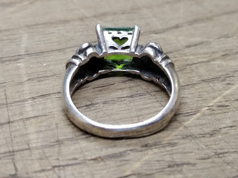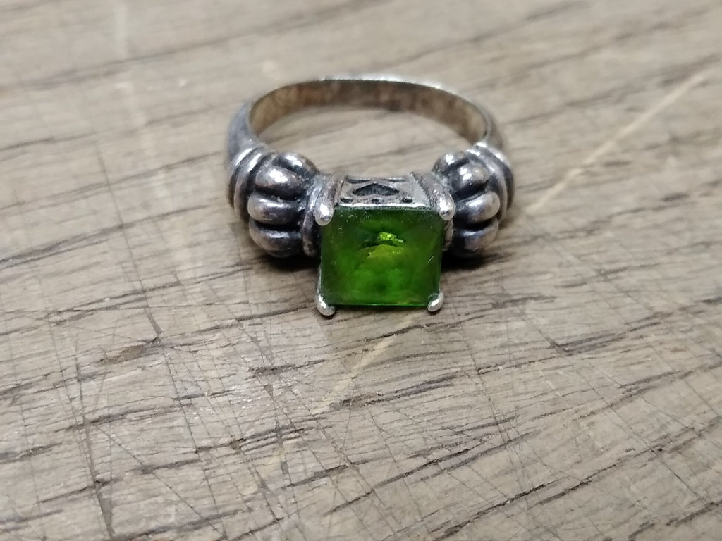 ***PLEASE LOOK AT ALL THE PICTURES AND ASK QUESTIONS BEFORE BIDDING*** This is a Vintage 925 Sterling Silver Green Peridot Size 8 Ring Very Nice!! *** The pictures are a substantial part of the description so please examine all the photos and contact me if you have any questions. We will be happy to save you shipping costs by picking this up at our shop. Thank You 090225-11-RK