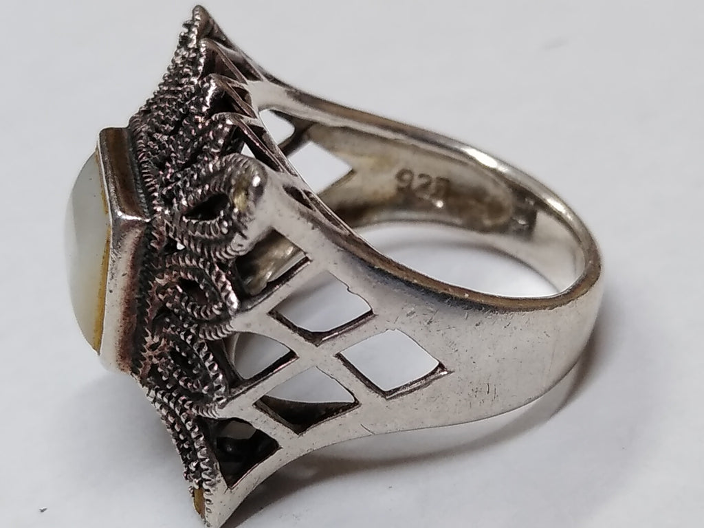 ***PLEASE LOOK AT ALL THE PICTURES AND ASK QUESTIONS BEFORE BIDDING*** This is a Vintage 925 Sterling Silver Mother Of Pearl Abalone Ring Size 7 Nice Condition! *** The pictures are a substantial part of the description so please examine all the photos and contact me if you have any questions. We will be happy to save you shipping costs by picking this up at our shop. Thank You 092525-09-RK