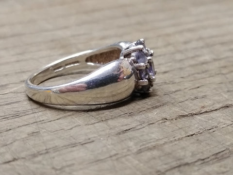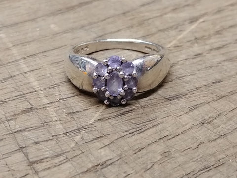 ***PLEASE LOOK AT ALL THE PICTURES AND ASK QUESTIONS BEFORE BIDDING*** This is a Vintage 925 Sterling Silver with 9 Amethyst Stones Size 8.25 Ring Beautiful!!! *** The pictures are a substantial part of the description so please examine all the photos and contact me if you have any questions. We will be happy to save you shipping costs by picking this up at our shop. Thank You 090225-12-RK