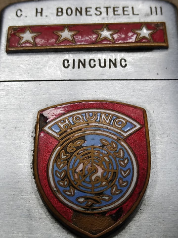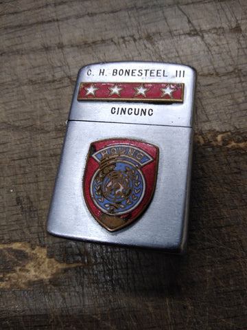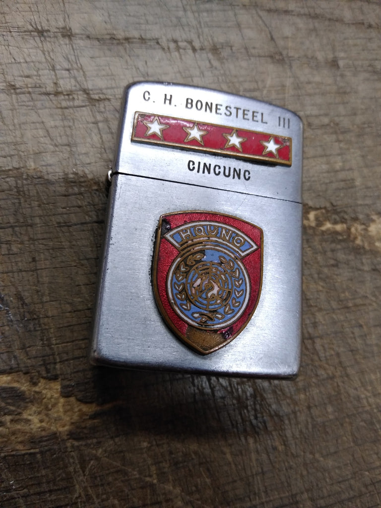 ***PLEASE LOOK AT ALL THE PICTURES AND ASK QUESTIONS BEFORE BIDDING*** This is a Vintage 1950's-1960's ABC Cigarette Lighter, General CH BONESTEEL III CINCUNC HQUNC, Korean War Presentation Lighter with RV MILLEMAN on the reverse. Lighter is in decent shape!. *** The pictures are a substantial part of the description so please examine all the photos and contact me if you have any questions. We will be happy to save you shipping costs by picking this up at our shop. Thank You 041825- RK-04