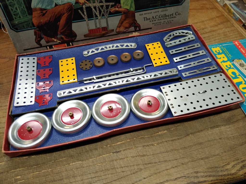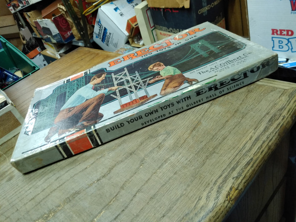 This is a Vintage AC Gilbert Erector Set No 2 1/2 100 Toys In One Original Box with Manual! *** The pictures are a substantial part of the description so please examine all the photos and contact me if you have any questions. We will be happy to save you shipping costs by picking this up at our shop. Thank You 030425- RK-09