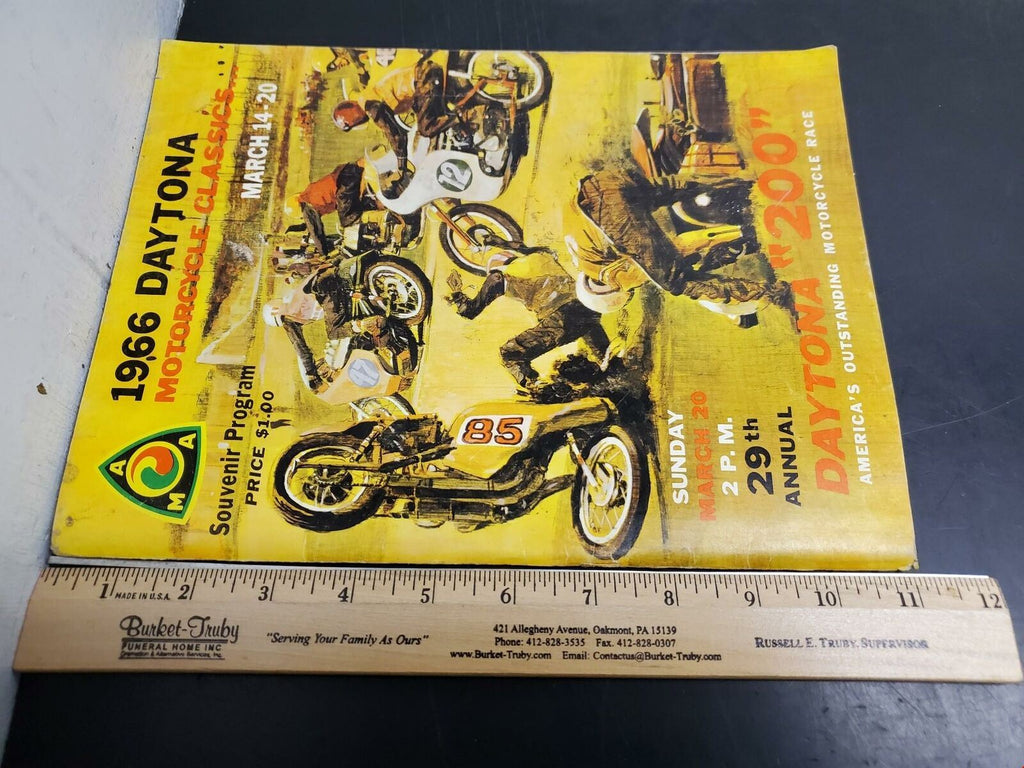 Vtg AMA 1966 Daytona 200 Motorcycle Race Classics Souvenir Program/Magazine Nice. Extremely cool Souvenir Program/Magazine from March 14-20 of 1966. Features stunning vibrant cover with awesome artwork.