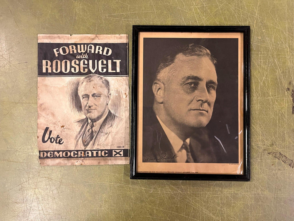 VTG antique 1930s Forward With Roosevelt FDR Campaign poster & framed picture