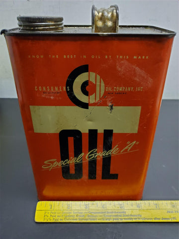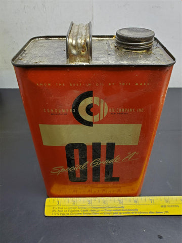 Vtg Antique Consumers Oil Company Inc Special Grade "A" Oil Can Unopened Mancave