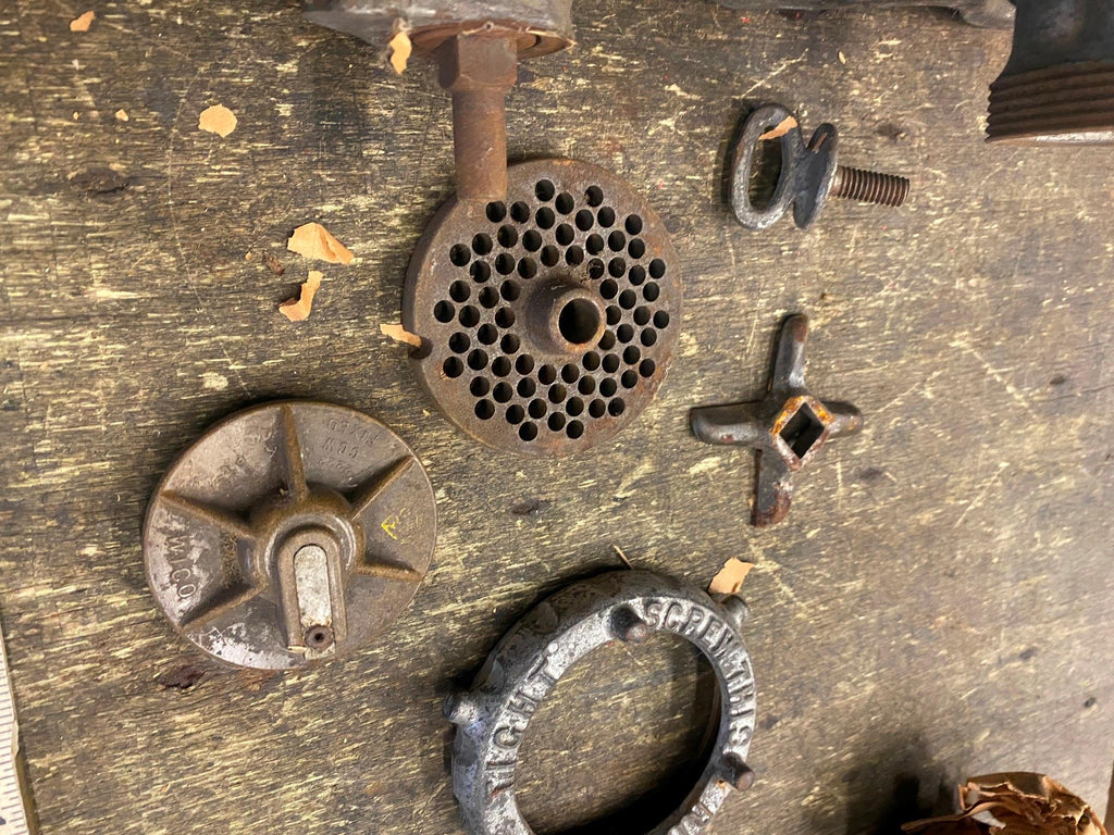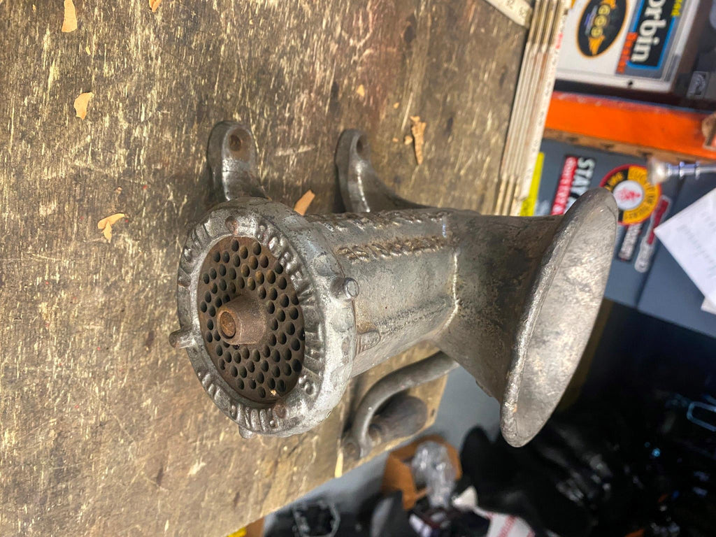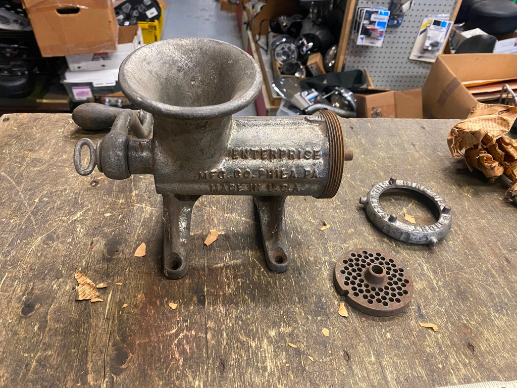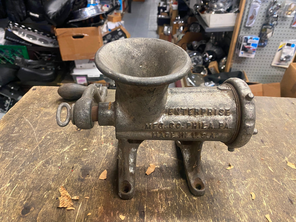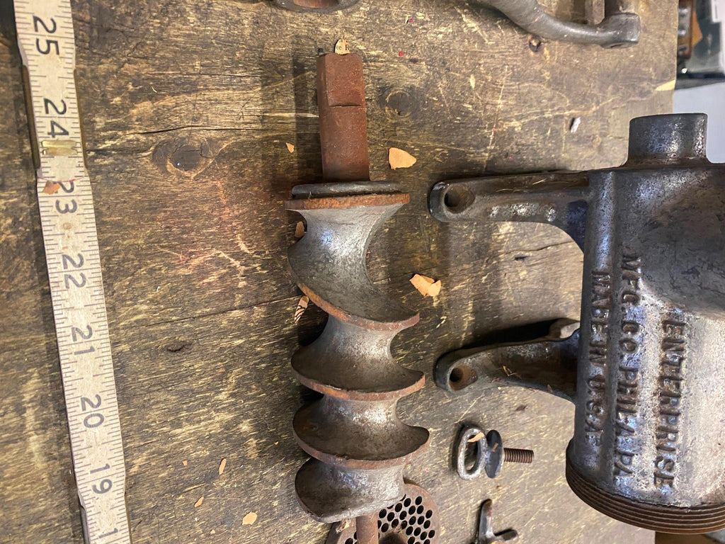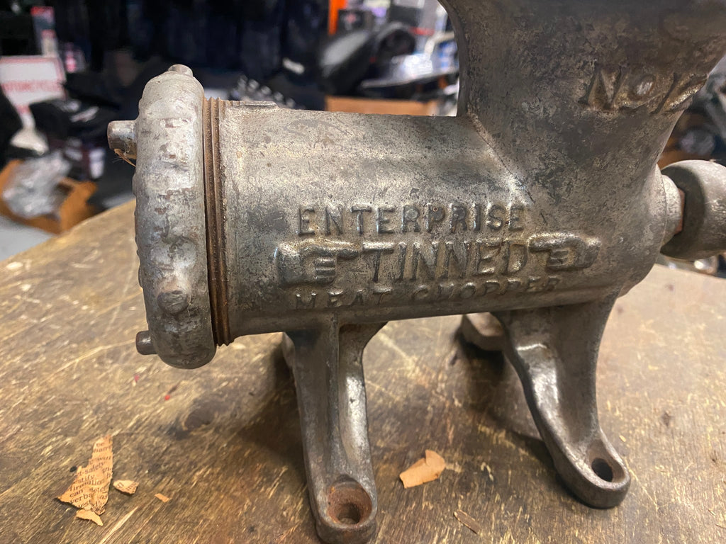 Vtg Antique Enterprise Tinned No. # 12 Meat Chopper Grinder USA Butcher Kitchen probably 100 years old, nice survivor, one of those old usa made quality product that will last another 100 years!! the wico piece doesnt come with it, was mistingly put in pic