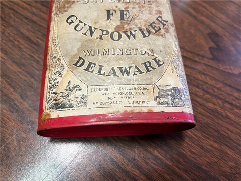 VTG Antique Made In USA 1920s Dupont Superfine FF Gunpowder Tin EMPTY