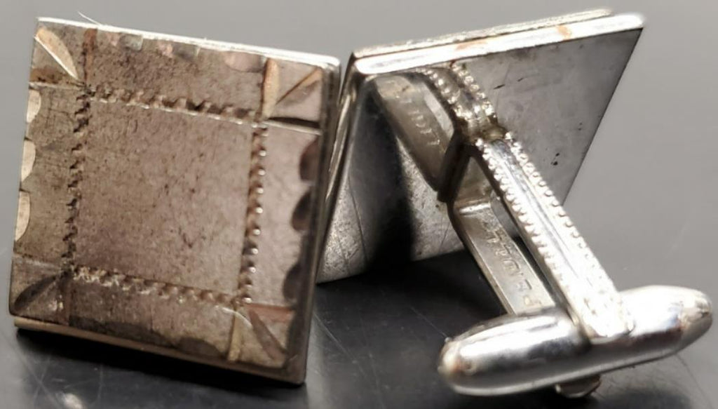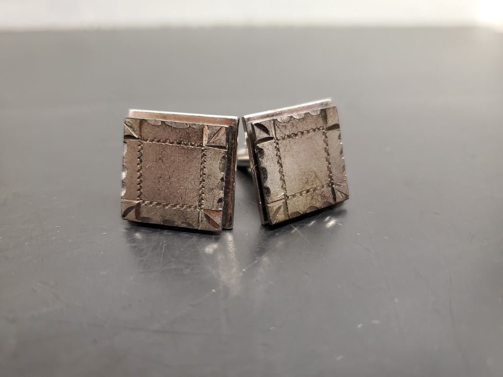 Vtg Antique Men's Silver Platinum Tone Ornate Cufflinks Jewelry Suit Tie Tuxedo Gala