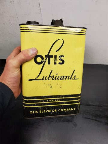 Vtg Antique Otis Lubricants 1 Gallon Elevator Unopened Oil Can Yellow Mancave