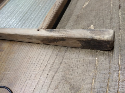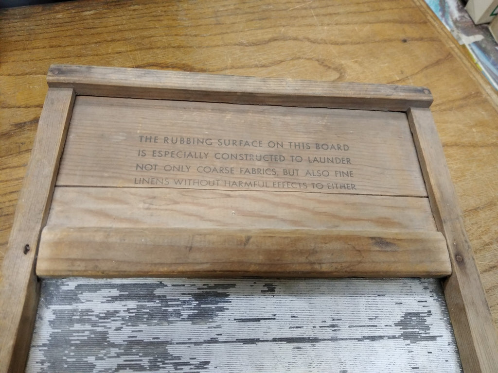 This is a Vintage Antique Primitive Double Sided Glass and Wooden Washboard . One side for Course Fabric and the other side is for Fine Linen. Made In Ohio! * Nomenclature is faded and worn but I can make out "The ???? Pump & Ladder Co. Ohio" *** The pictures are a substantial part of the description so please examine all the photos and contact me if you have any questions. We will be happy to save you shipping costs by picking this up at our shop. Thank You 011425- RK-03