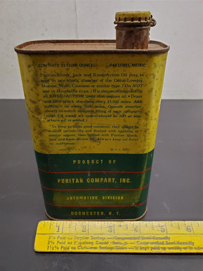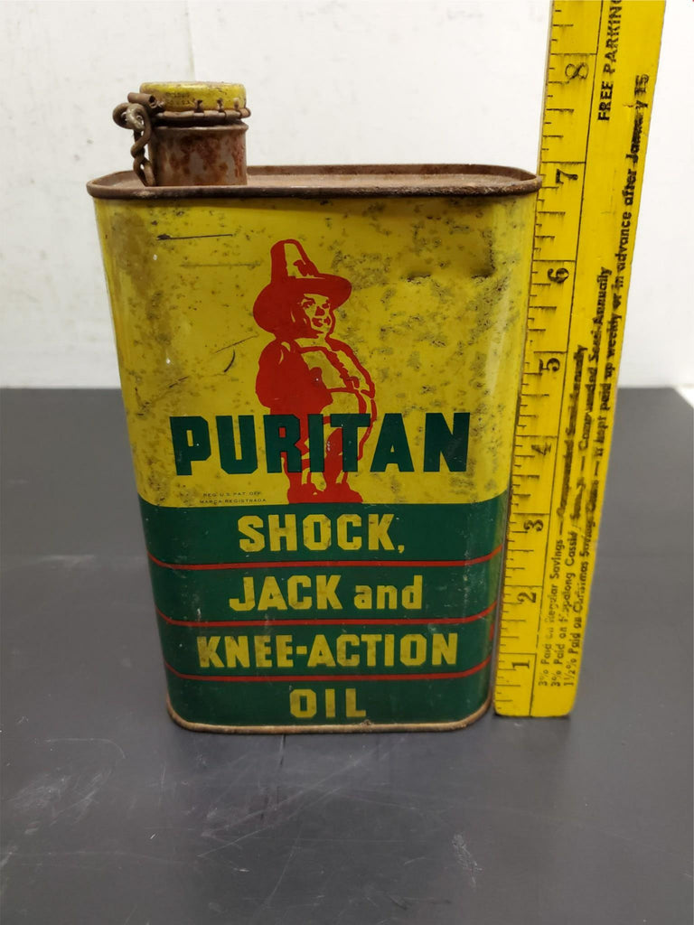 Vtg Antique Puritan Shock, Jack and Knee-Action Oil Unopened Can 32 Oz. Mancave