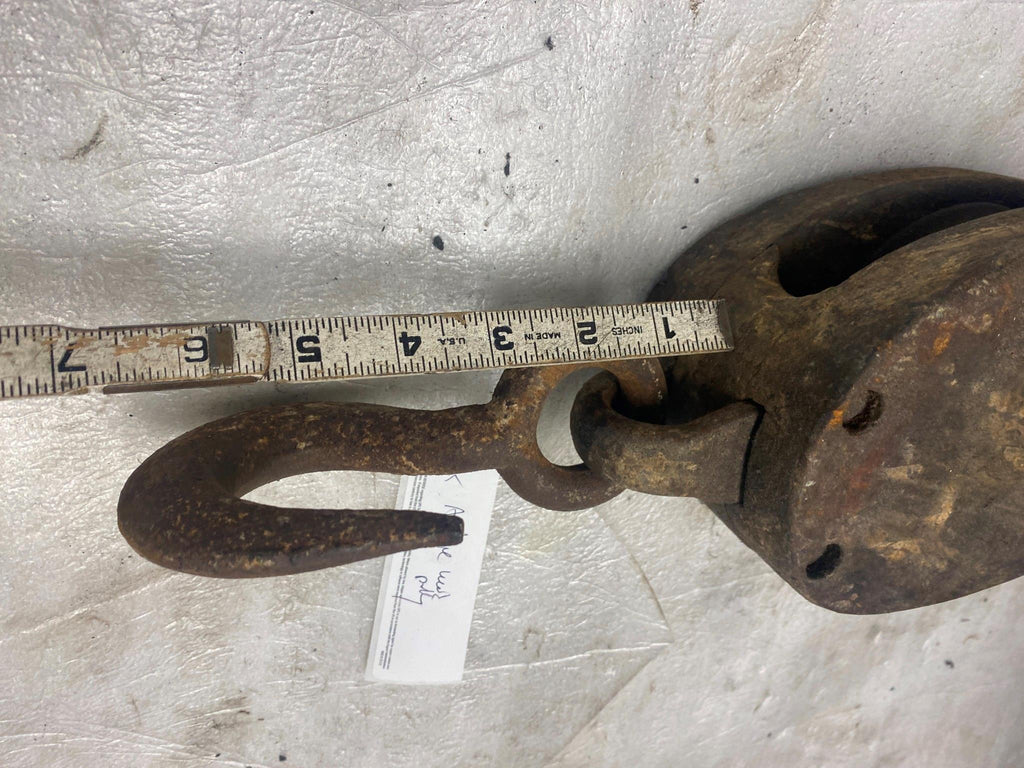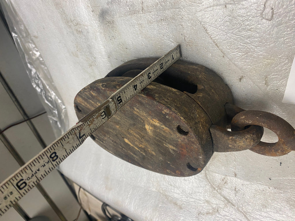 Vtg Antique Tall ship Sail Boat Riggin Block Tackle Pulley Wood Metal Cast Hook    have some other wood pulleys off an old sailing ship/boat.....   believe this is a boston.